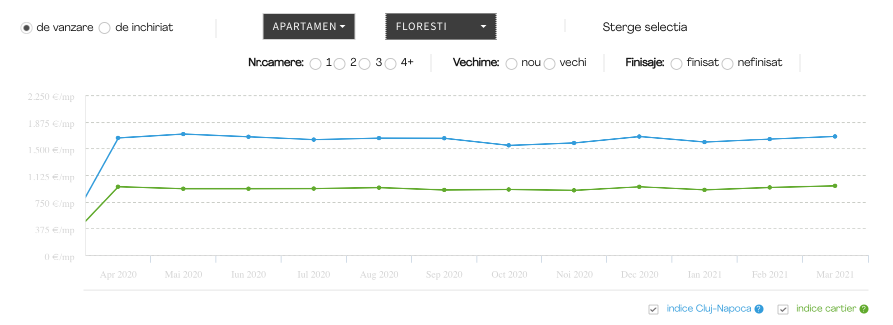 *Indicele Blitz reprezintă un instrument statistic ce oferă informații cu privire la media prețurilor publice pentru apartamentele de vânzare din Cluj și din vecinătăți, exprimată în euro/mp.
