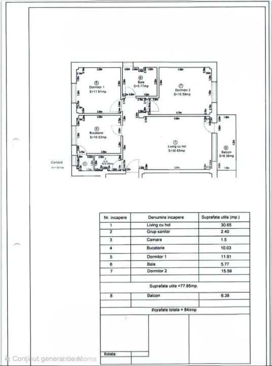 Suprafață utilă: 77.85 mp