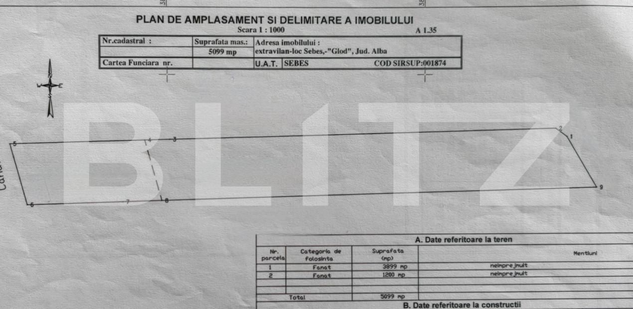 Blitz va propune spre vanzare teren extravilan de 5100mp potrivit ca si investitie deoarece zona este in continua dezvoltare si este posibil sa fie trecut in intravilan cat de curand! Ideal pentru investitie! Cod ofertă / ID BLITZ: P13500