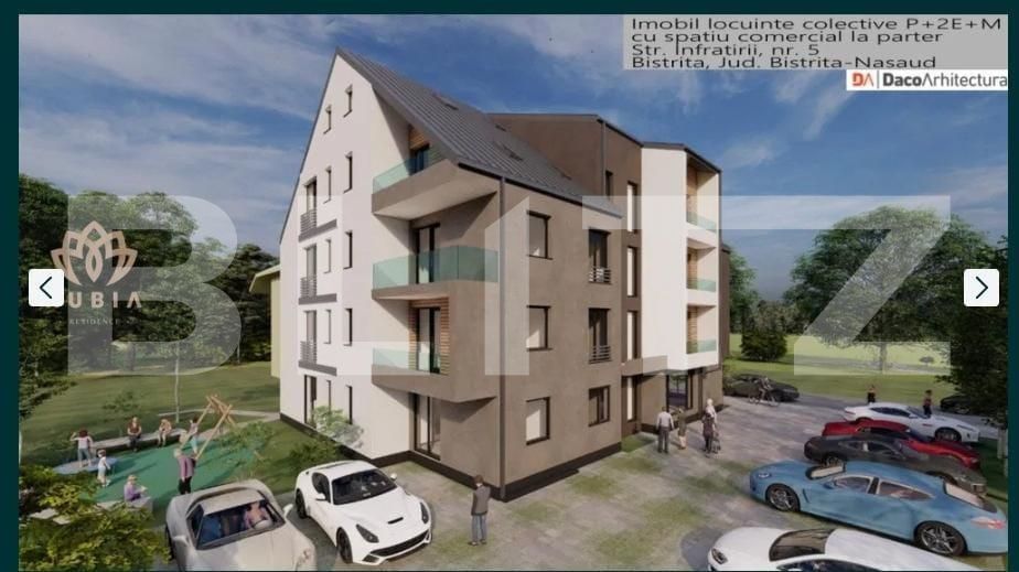 Apartamentele sunt situate strategic intr-o zona cu magazine, scoli, statie de autobuz, banci, farmacii, restaurante, spatiu de joaca pentru copii, solar, saloane de infrumusetare, supermarket, centru comercial de cumparaturi (toate la mai putin de 100 metri de mers pe jos). Imobilul va fi compus din 12 apartamente plus spatiu comercial la parter si va fi dotat cu lift din sticla cu vedere panoramica afara cu capacitatea de 6 persoane.