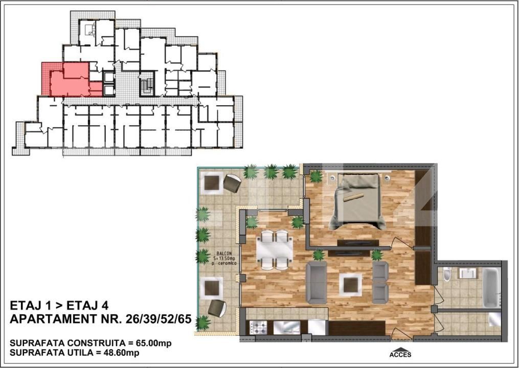 Suprafață utilă: 48.6 mp