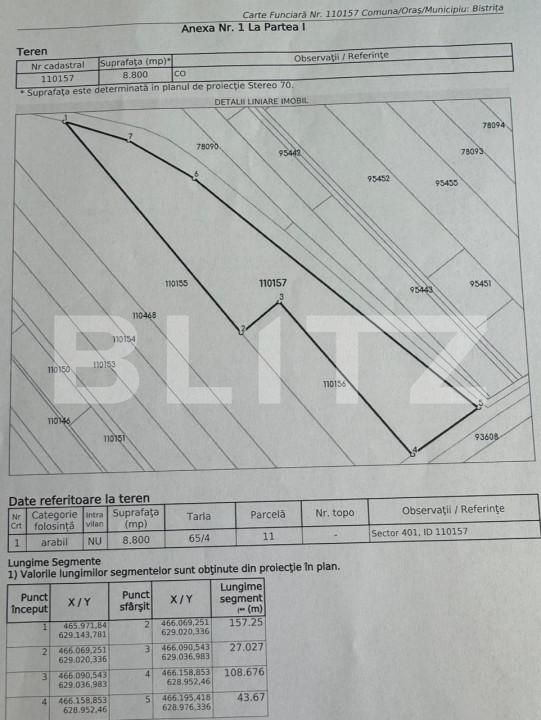 Teren intravilan cu dublu acces + construcție la roșu 500 mp, centura Bistrita