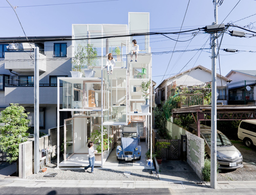 O casa dispusa pe 3 etaje, avand peretii din sticla si balcoane fara balustrada, este propunerea arhitectului Sou Fujimoto din Tokyo.