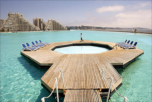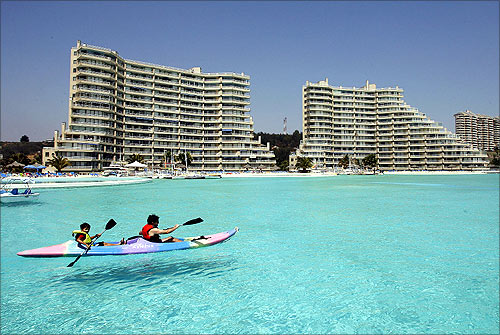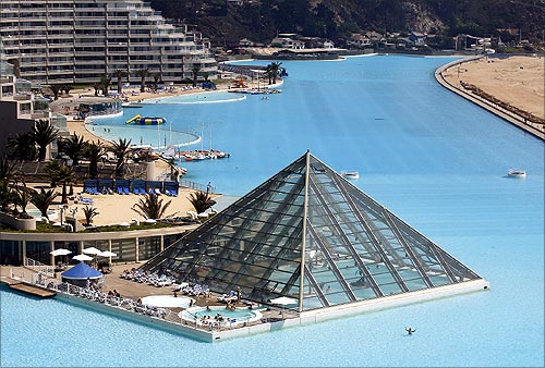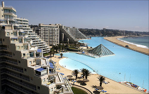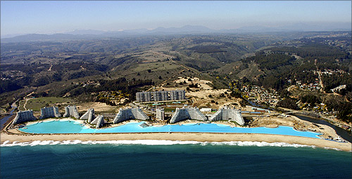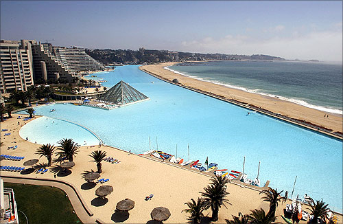 Poate ca multi dintre noi ne-am fi gandit la Dubai, pentru ca acolo este locul miracolelor arhitectonice recente si a recordurilor. Surpriza! Piscina gigantica este in celalalt colt al lumii, in Chile! Mai exact la 100 de kilometri de Santiago, in Algarrobo si face parte dintr-un complex turistic high class- San Alfonso del Mar Resort.