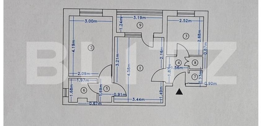 Blitz oferă spre vânzare un apartament cu 2 camere, situat în zona Sucevei, la etajul 3, într-un imobil izolat termic exterior. Apartamentul este semidecomandat, cu o suprafață utilă de 44,9 mp, la care se adaugă un balcon de 4 mp.