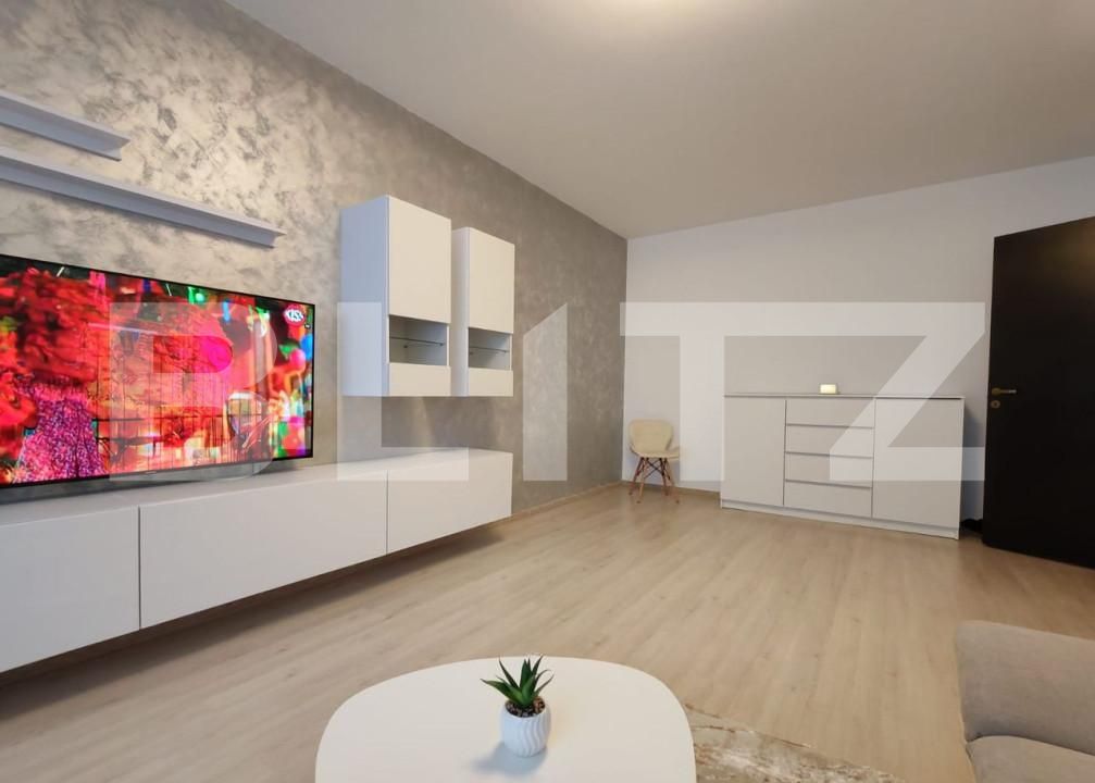 ✔ Living spațios și luminos – canapea extensibilă, TV Smart, acces la balcon.