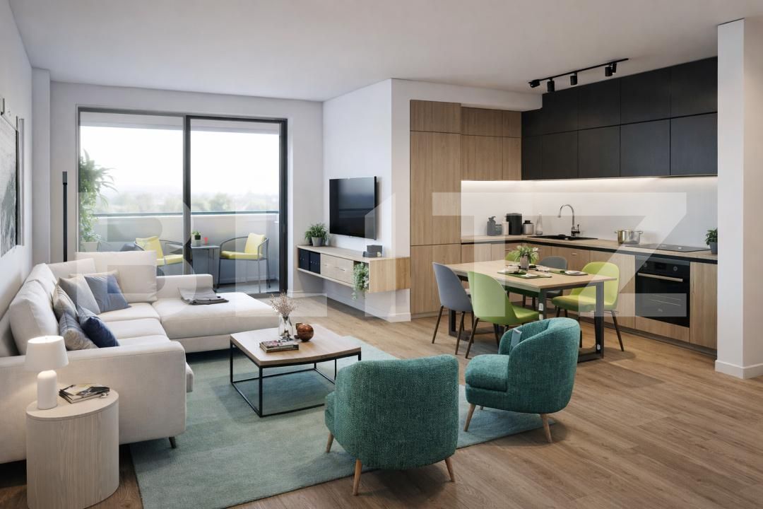 Apartament 2 camere, living cu bucătărie open space, balcon – 50 mp utili