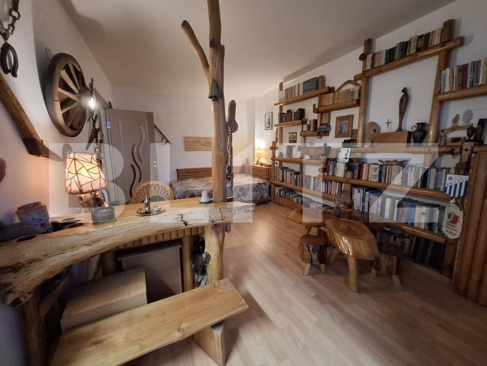 Locuința impresionează prin atmosfera caldă și primitoare, cu elemente din lemn și un design cu personalitate. Spațiul este luminos, bine compartimentat și oferă confortul necesar pentru locuire imediată.