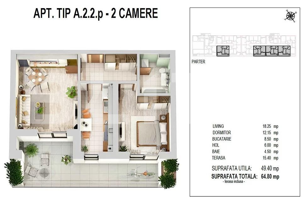 Suprafață utilă: 49.4 mp