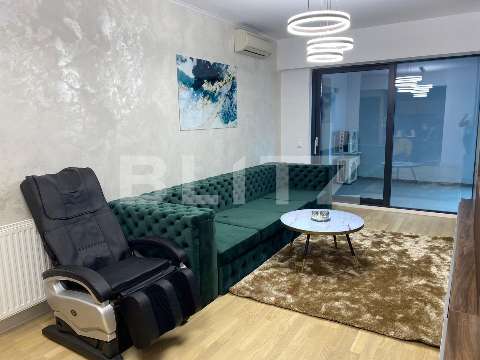 In living exista un smart TV Philips cu o diagonala de 163 cm, un semineu, precum si un scaun de masaj de ultima generatie. De asemenea, canapeaua extensibila se poate transforma intr-un pat queen size.