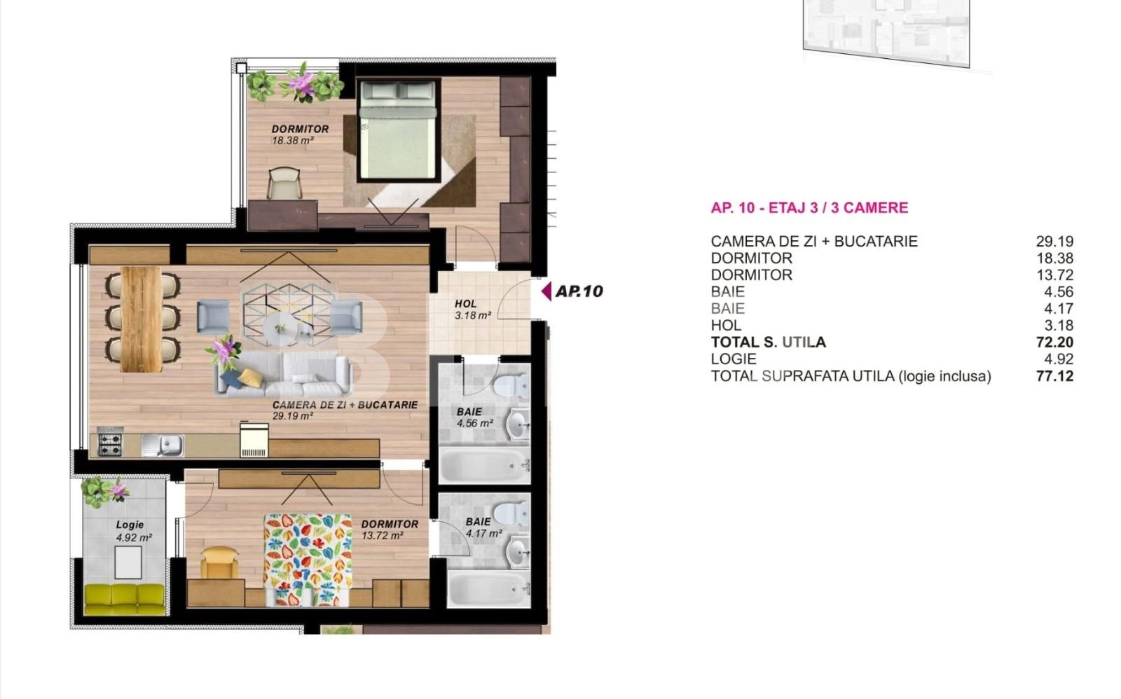 Suprafață utilă: 77 mp