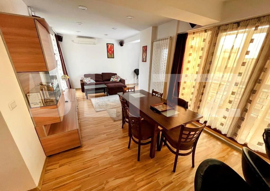 Blitz va propune un apartament premium intr-un ansamblu, construit in 2010, din zona Pipera ce dispune de un loc de parcare subteran. Acest imobil este situat in zona Pipera, fiind pozitionat in imediata apropiere de urmatoarele puncte de interes: WorldClass Atlantis - Mark Twain International School - British School of Bucharest - Olga Gudynn International School, Scoala Americana, în proximitate se află și principalele hub-uri comerciale și de birouri ale Bucureștiului: Băneasa Shopping City, sediile mai multor companii de renume, ambasade, restaurante, cafenele, locuri de joacă și grădinițe private. Proprietatea este compartimentata astfel: 3 camere, hol generos de acces, living spatios, zona dining, mobilat modern, 2 dormitoare, cu suprafețe mari, bucatarie deschisa(dar care poate fi inchisa), o baie cu cada su una cu dus, mai multe zone si spatii de depozitare si un balcon inchis si izolat. Pentru siguranța dumneavoastră ansamblul este prevăzut cu bariera la intrare. Apartamentul are centrala termica proprie. Pentru mai multe detalii va asteptam cu drag la vizionare.