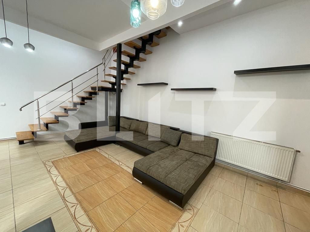 Va oferim spre inchiriere un apartament de 4 camere, mobilat si utilat modern, cu o suprafata utila de 100 mp, fiind impartit pe 2 niveluri: