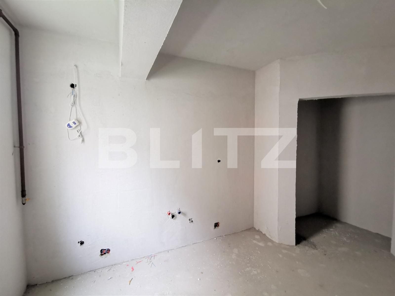 Blitz ofera spre vanzare un apartament cu 2 camere, in Ansamblul Rezidential din Baciu, un ansamblu cu un design arhitectural elegant care se bucura de un accces usor spre zona centrala. Acesta este situat la etajul 1 al imobilului si are o suprafata de 56mp, compartimentarea acestuia fiind decomandata, astfel: hol intrare, baie, bucatarie cu camara, 2 camere si 2 balcoane. Apartamentul se preda semifinisat, cu sapa autonivelanta, un rand de glet, usa metalica la intrare si geamuri din termopan. Exista posibilitatea achizitionarii apartamentului in rate, pretul in acest caz fiind de 1200E/mp. optional se poate opta si pentru un loc de parcare la pretul de 3500 EURO +TVA.