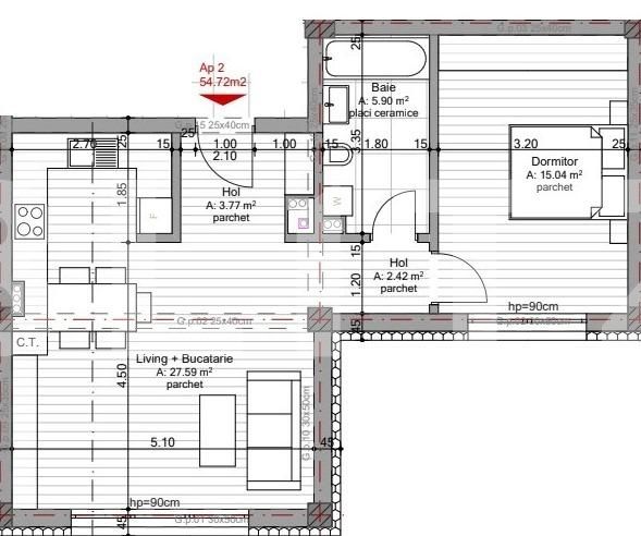 Suprafață utilă: 54.72 mp