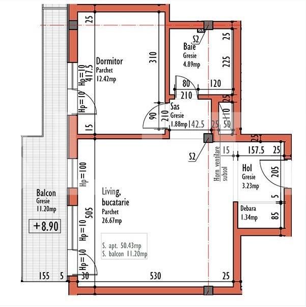 Suprafață utilă: 50.43 mp