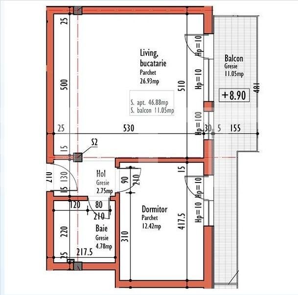 Suprafață utilă: 46.88 mp