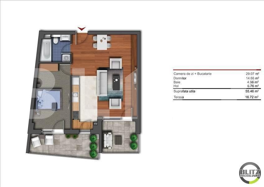 Suprafață utilă: 55.46 mp