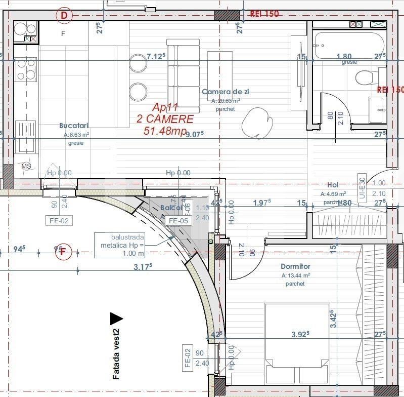 Apartamentul este pozitionat la etajul 3 intr-un imobil cu 4 niveluri, cu o suprafata utila de 51,46 mp si face parte dintr-un complex rezidential nou.
