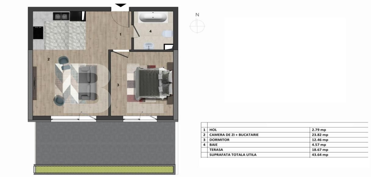 Suprafață utilă: 43.64 mp
