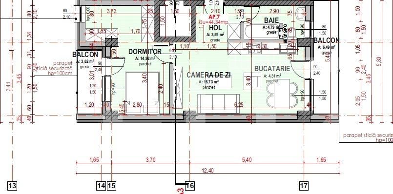 Suprafață utilă: 44.34 mp