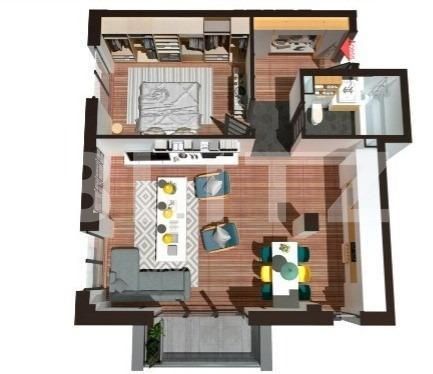 Acesta este compartimentat astfel: 1 living spatios open space cu bucataria în care puteti petrece clipe memorabile împreună cu familia și prietenii cu iesire pe balcon, 1 dormitor, 1 baie si 1 hol.