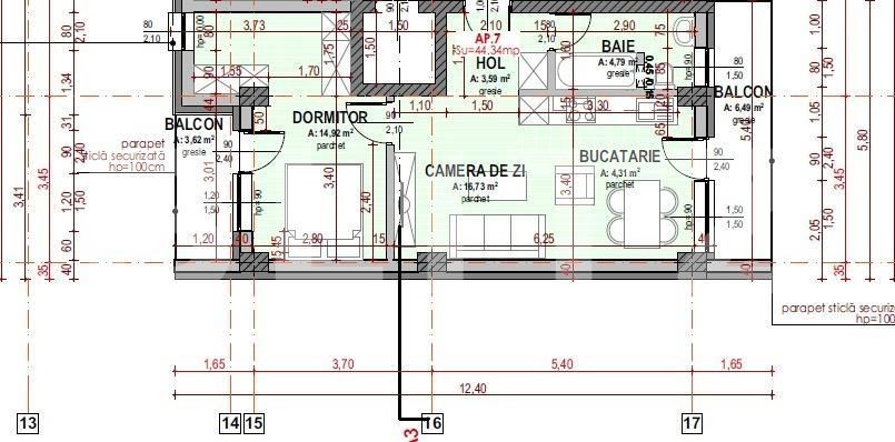 Suprafață utilă: 44.34 mp