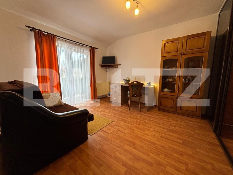 Acest apartament beneficiază de proximitatea față de stațiile de autobuz, magazine, farmacii, gradinite si zone verzi. Amplasat la etajul 4 al unui imobil cu regim de înălțime P+4, finalizat în anul 2008, apartamentul are o suprafață utilă de 50.72 mp plus balconul de 4.20 mp. Compartimentarea acestuia este semidecomandata si constă în următoarele: hol, living open space cu bucatarie cu o nisa de dormit cu usi de sticla, 1 dormitor, baie si balcon. Apartamentul se vinde complet finisat și mobilat , cum se v-a prezenta la vizionare, iar in pretul apartamentului este inclus si un loc de parcare exterior.