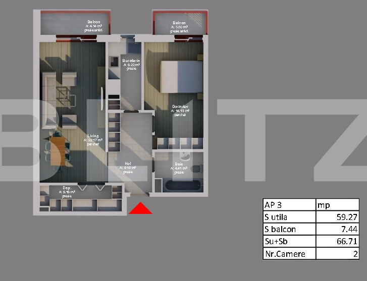 Suprafață utilă: 59 mp