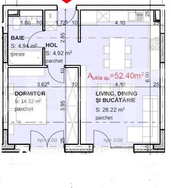 Suprafață utilă: 52.5 mp