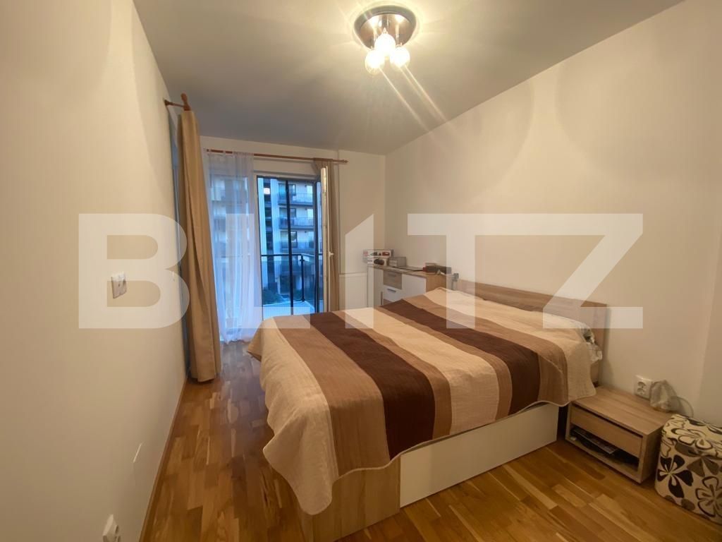 Apartamentul este situat la etajul 2 intr-un imobil nou dispus pe 10 niveluri. Suprafata utila de 53,40 mp utili se prezinta astfel: un dormitor cu geamuri mari si acces pe terasa, living open space cu bucatarie complet mobilata si utilata, de asemenea cu iesire pe terasa de 11,60 mp si o baie cu cada. Beneficiaza de centrala termica propie, geam termopan cu tamplarie PVC, usa metalica la intrare, usi interioare din lemn natur, parchet din lemn masiv triplustratificat.