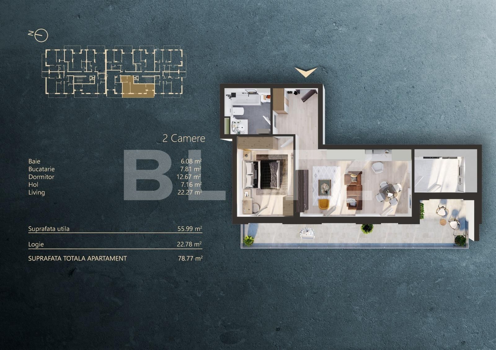 Suprafață utilă: 55.99 mp