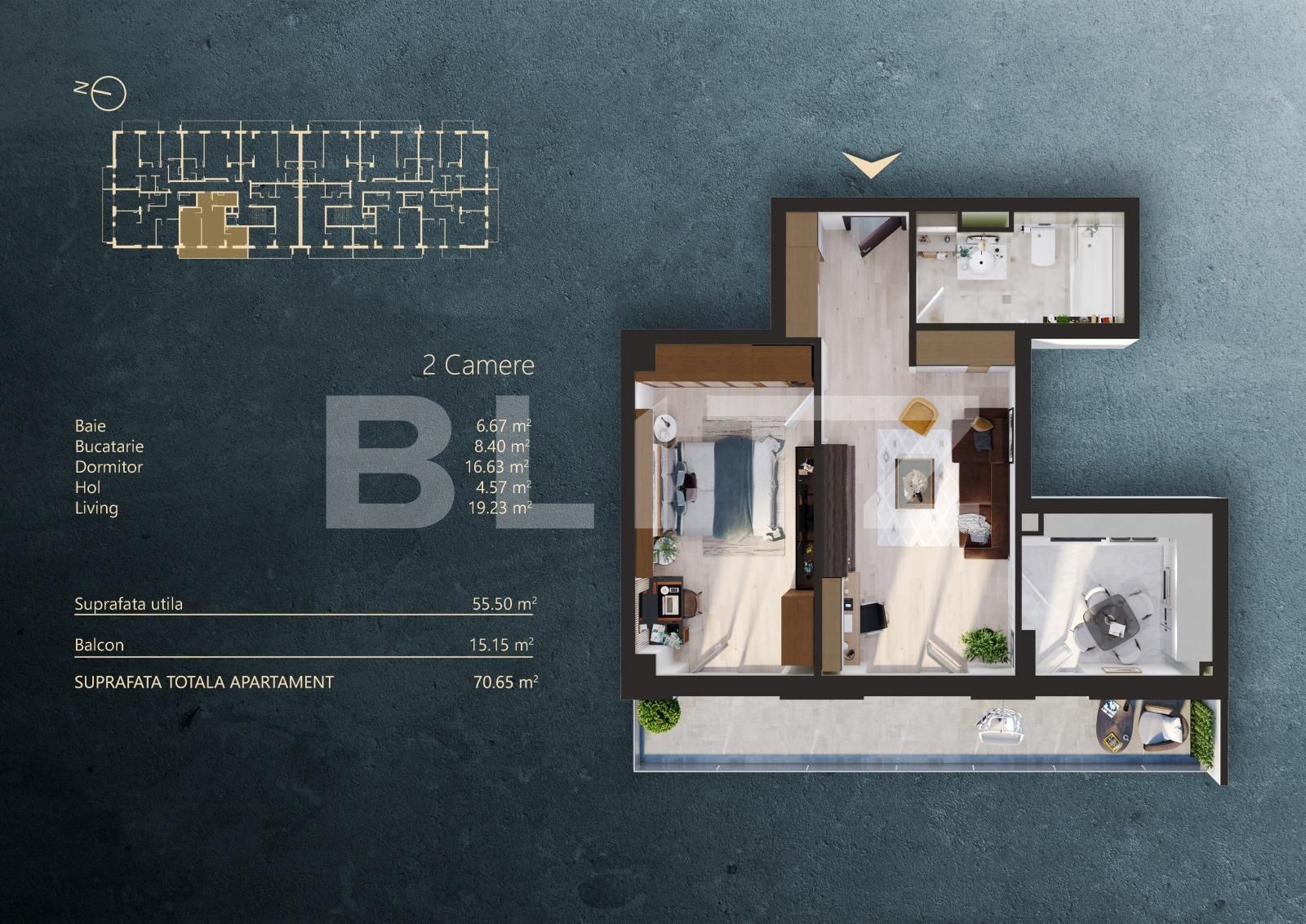 Suprafață utilă: 55.5 mp