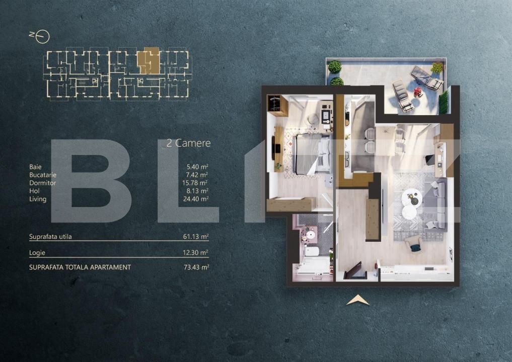 Suprafață utilă: 61.13 mp