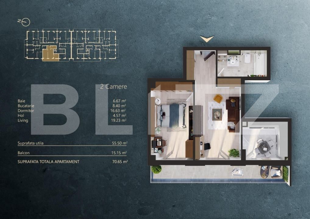 Suprafață utilă: 55.5 mp