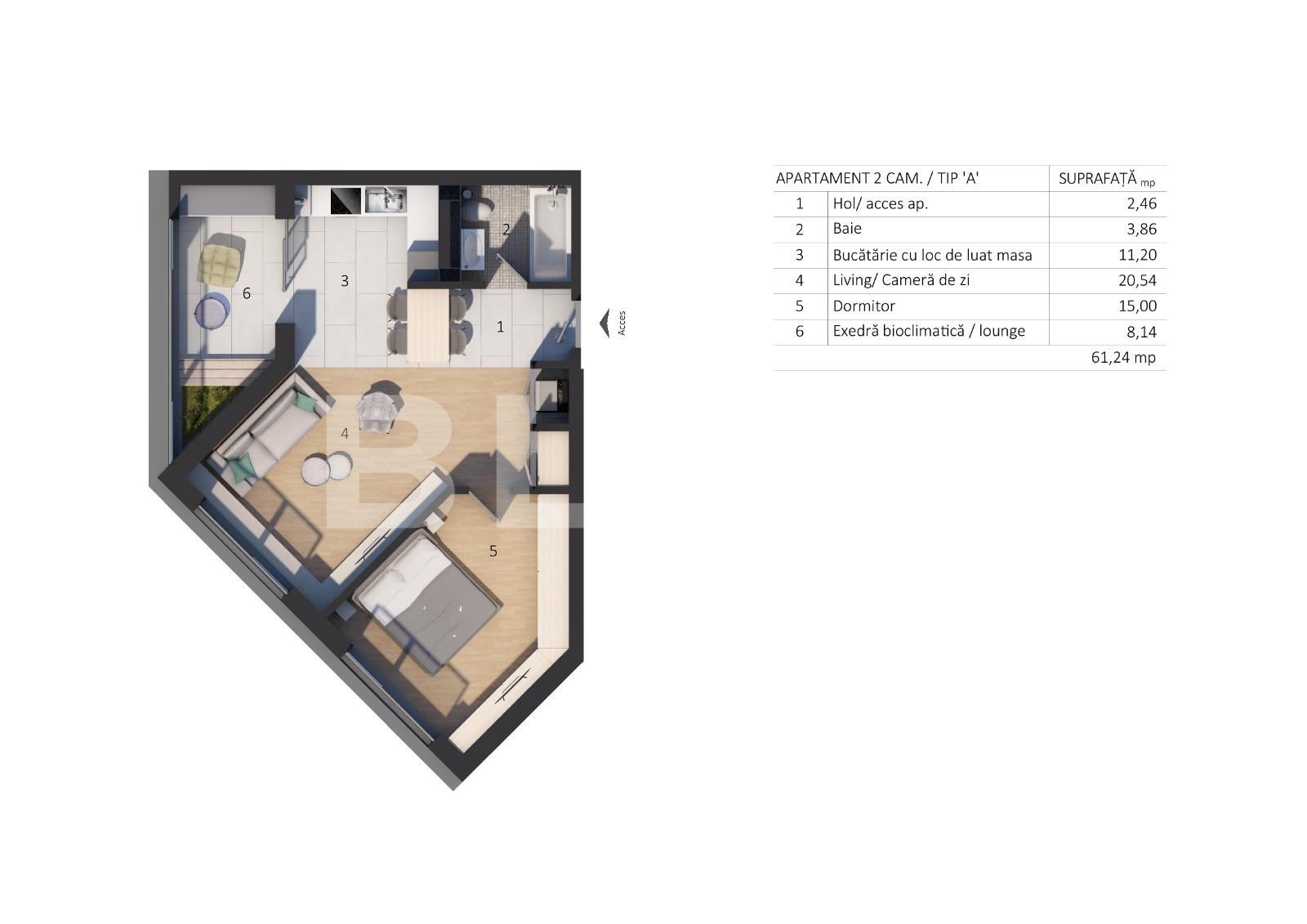 Suprafață utilă: 61.24 mp