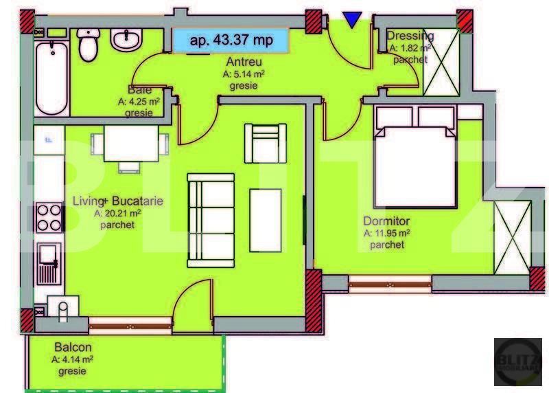Suprafață utilă: 43.37 mp