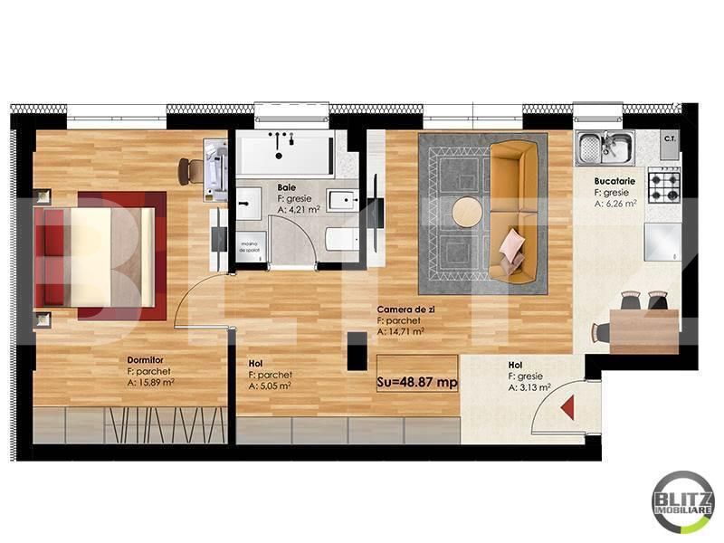 Suprafață utilă: 48.87 mp