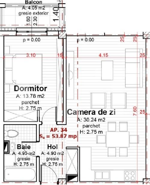Suprafață utilă: 53.87 mp