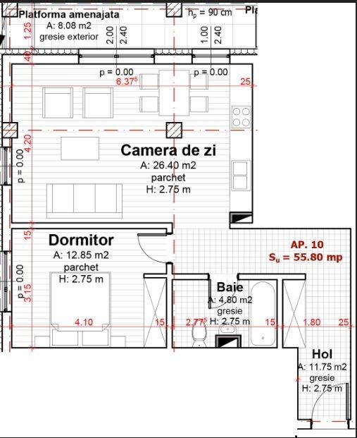 Suprafață utilă: 55.8 mp