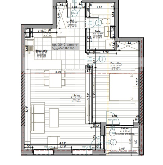 Suprafață utilă: 57 mp