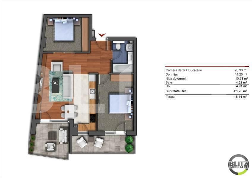 Suprafață utilă: 61.28 mp
