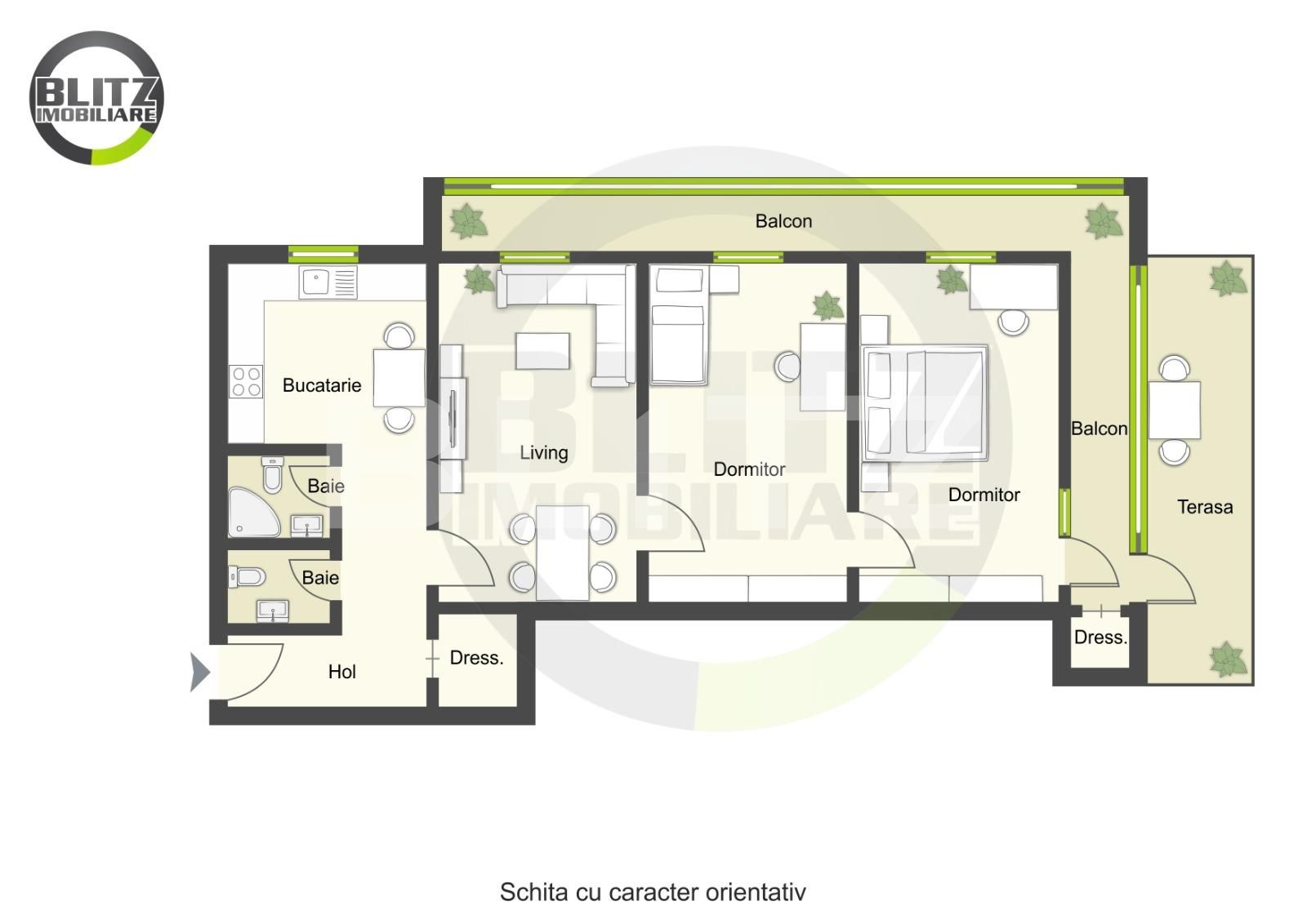 Linkuri rapide filtrate după cele mai căutate zone și numărul de camere
