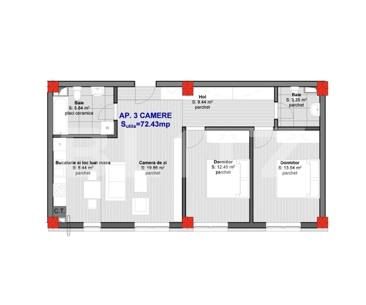 Suprafață utilă: 72.43 mp