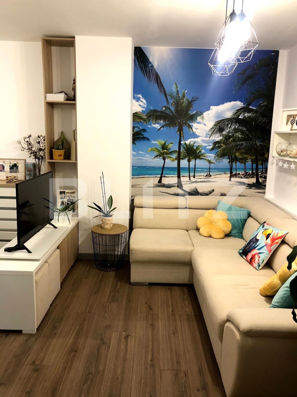 Daca vrei un apartament de la cheie, intr-o zona frumoasa, linistita, dar in acelasi timp aproape de toate facilitatile orasului, atunci ai ajuns in locul potrivit. Apartamentul dispune de un confort superior, fiind situat intr-un ansamblu de top in zona, cu facilitati multiple si acces la zone verzi. Este compartimentat modern, living open space cu bucatarie, 2 dormitoare,baie , o baie ce este folosita pe poste de dressing si 1 balcon si acces in zona de relaxare special destinata proprietarilor. Apartamentul este dotat cu incalzire prin calorifere cu cap termostatat si centrala proprie, geam termopan triplustrat, balcon amenajat cu gresie antiderapanta balustrada de sticla securizata, finisaje moderne si se vinde partial mobilat utilat. Pentru o vizionare va stam la dispozitie!