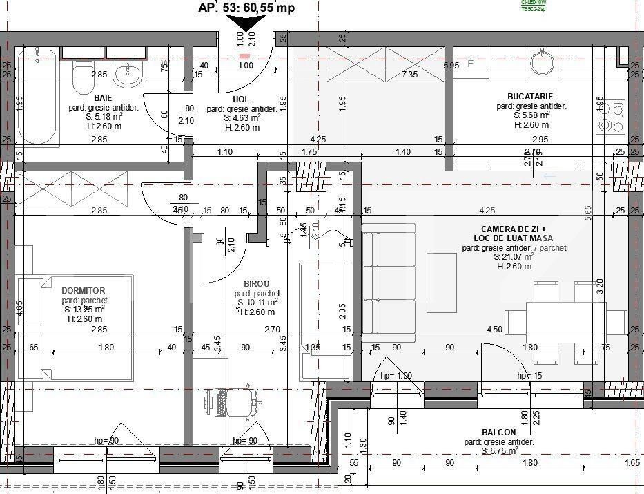 Suprafață utilă: 60.55 mp