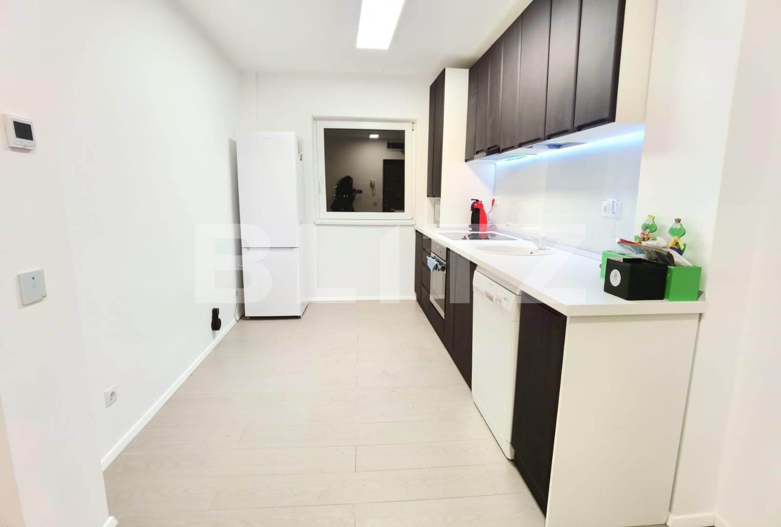 Blitz ofera spre vanzare un apartament deosebit, ultrafinisat, situat in cartierul Marasti, intr-o zona extrem de accesibila, la doar 10 min mers pe jos catre Iulius Mall. Este pozitionat pe etaj intermediar, iar compartimentarea apartamentului este decomandata fiind dispusa astfel: bucatarie, living, 2 dormitoare, 2 bai cu GEAM, camara, hol si 2 balcoane, unul inchis cu termopan iar celalalt deschis.