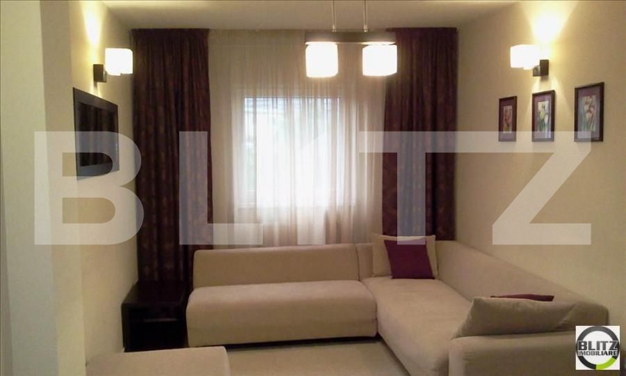 Imobilul se ofera complet mobilat (mobila la comanda Art Decor, adaptata interiorului) si utilat (combina frigorifica Beko, hota de bucatarie, cuptor microunde, plita pe gaz Franke, uscator rufe, LCD-uri LG).