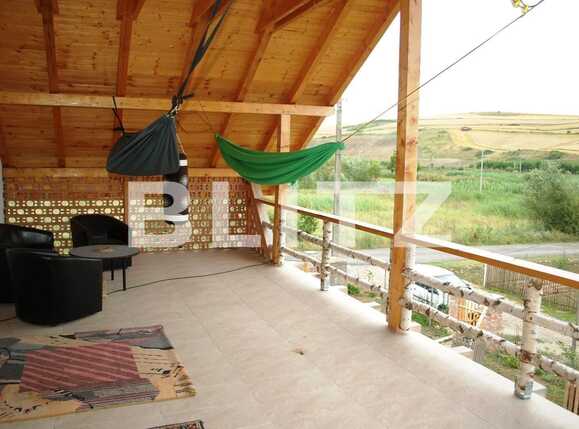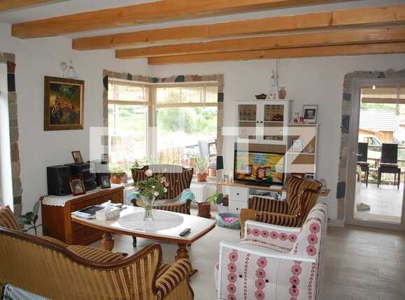 Suprafata utila este de 190 mp, terenul de 850 mp, front de 35 ml. Casa este dispusa pe 2 niveluri, astfel: la parter: living, bucatarie, loc de luat masa, camara, dormitor cu dressing, 2 bai, hol, 2 terase acoperite, incapere tehnica, la etaj: dormitor si baie 90mp, 2 terase acoperite . Beneficiaza de centrala pe peleti, geamuri si usa de la intrare termopan, glafuri piatra, gresie , faianta , parchet laminat , piatra naturala , amenajari deosebite. Gradina amenajata cu pavaj si gazon.