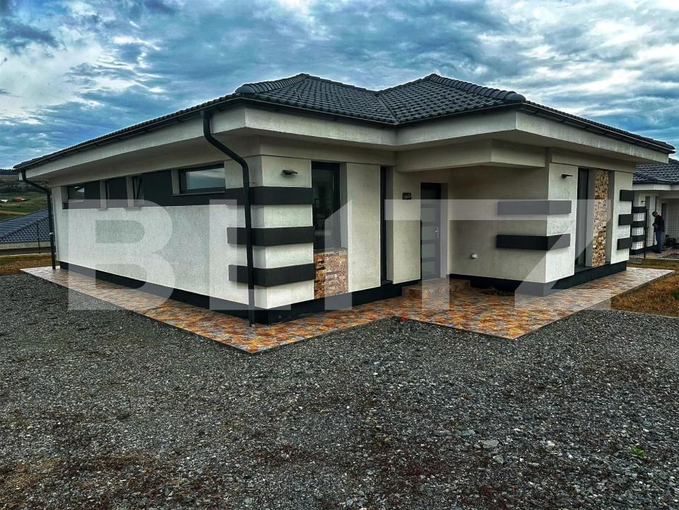 Casa are o suprafață construită de 120,2 mp, amplasată pe un teren plan de 500 mp – suficient pentru a crea un spațiu verde, o terasă de relaxare sau o mică grădină de familie.